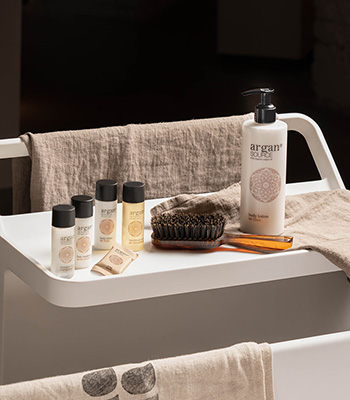 Abbiamo a cuore il benessere dell’ospite: per questo, oltre alla vasta gamma di cosmetici per la cura della persona, offriamo anche una collezione completa di accessori di cortesia e pantofole per rendere ancora più confortevole la sua esperienza di soggiorno.